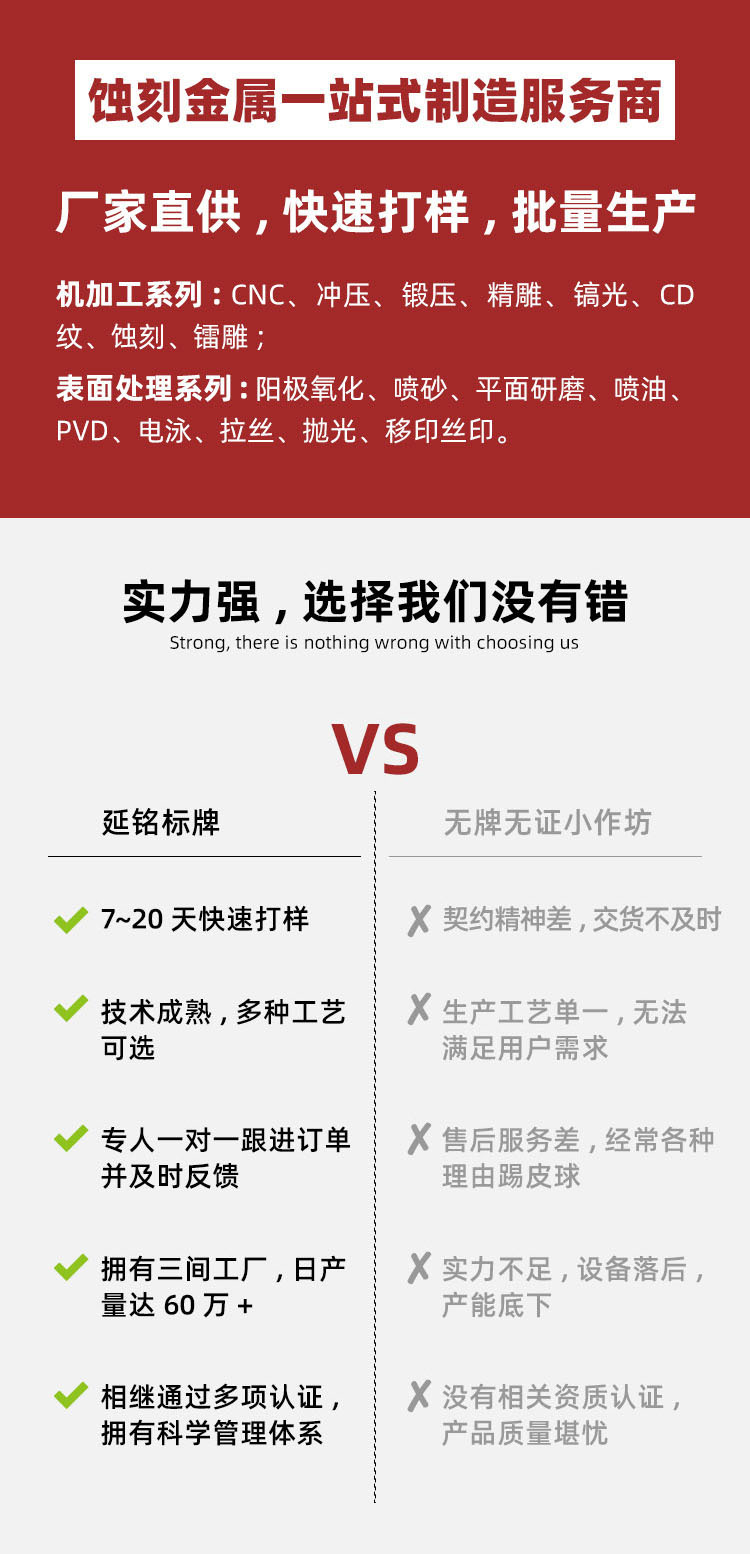 7、幾乎所有金屬都能被蝕刻,對各種圖案設(shè)計(jì)無限制。